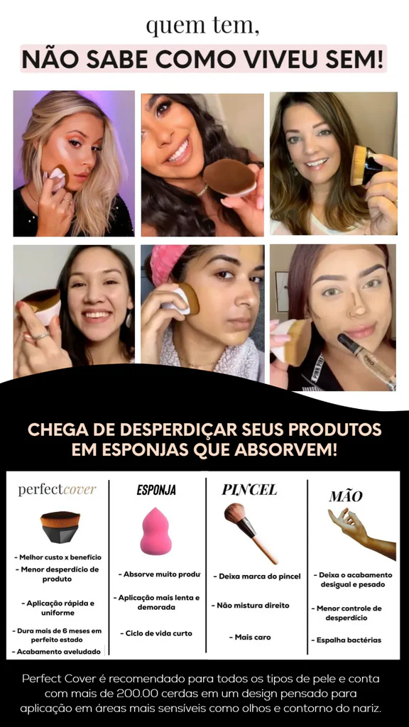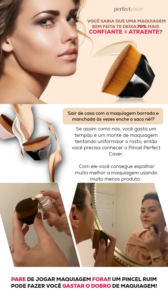 Transforme sua maquiagem diária com o pincel Perfect Cover e conquiste um acabamento mais uniforme, com aparência profissional, sem sair de casa.